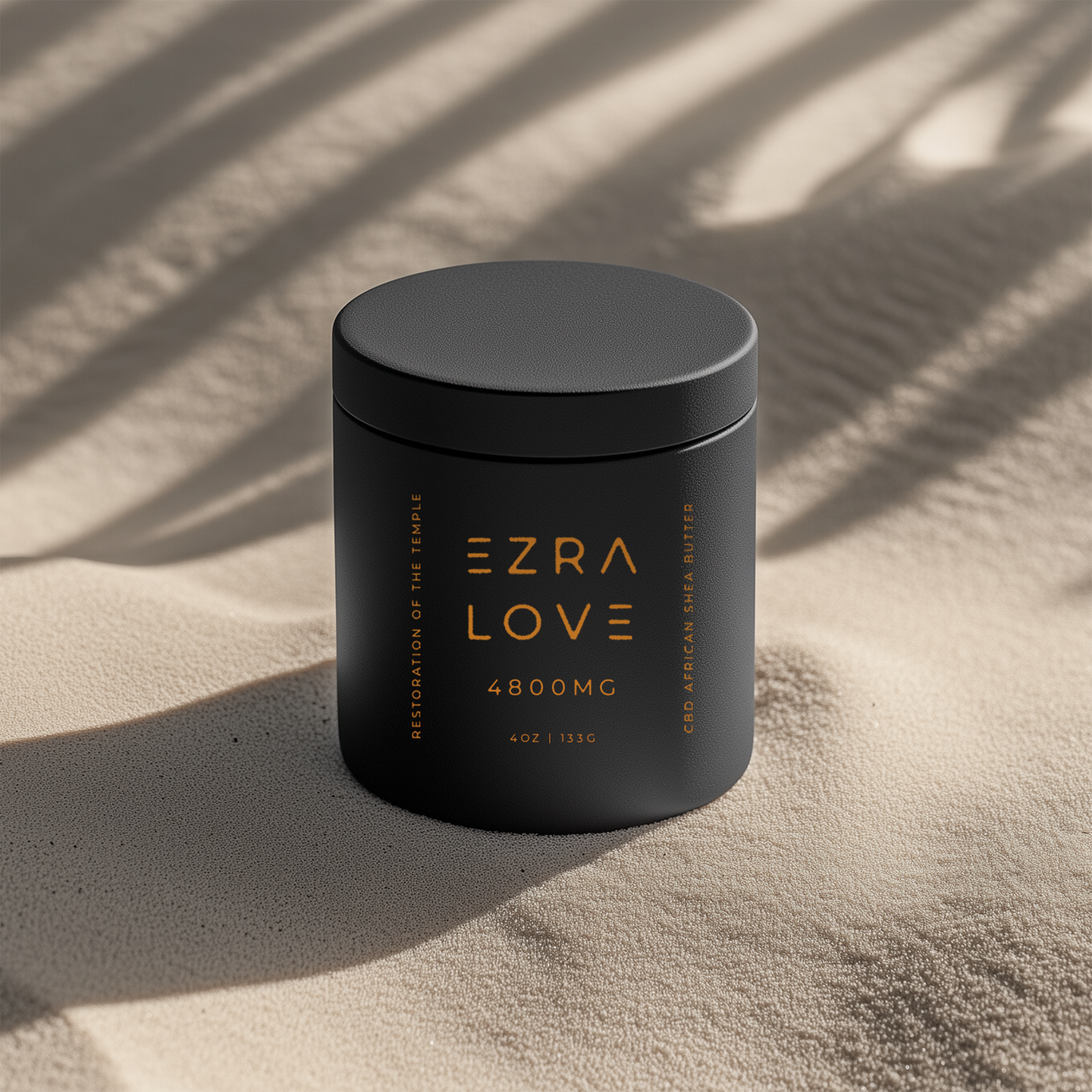 "Ezra Love is crafted with 12 powerful organic elements: African Shea Butter, Hemp Oil, Vanilla Oil, Coconut Oil, Baobab Oil, Jojoba Oil, CBD Oil (Hemp-Derived), Vitamin E Oil, Vitamin K Oil, Hibiscus Oil, Calendula Oil, and Myrrh Oil. Every ingredient is chosen for its healing, moisturizing, and Antinflammatory properties—Restore Your Temple